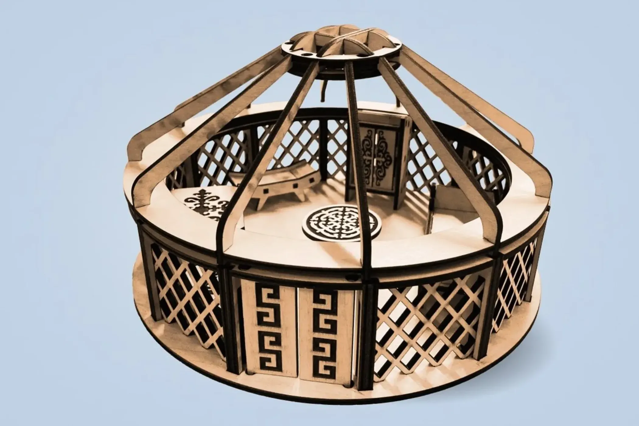 Lego-дан жасалған киіз үй моделі көшпенділердің дәстүрлі тұрмысын көрсететін бөлшектерден тұрады. Команда әрбір элементті барынша дәл таңдауды мақсат етіп қойды. Өйткені олардың негізгі аудиториясы - балалар, олар бұл заттың не екенін және қандай да бір бөлшекті қалай пайдалану керектігін түсінуге тиіс.