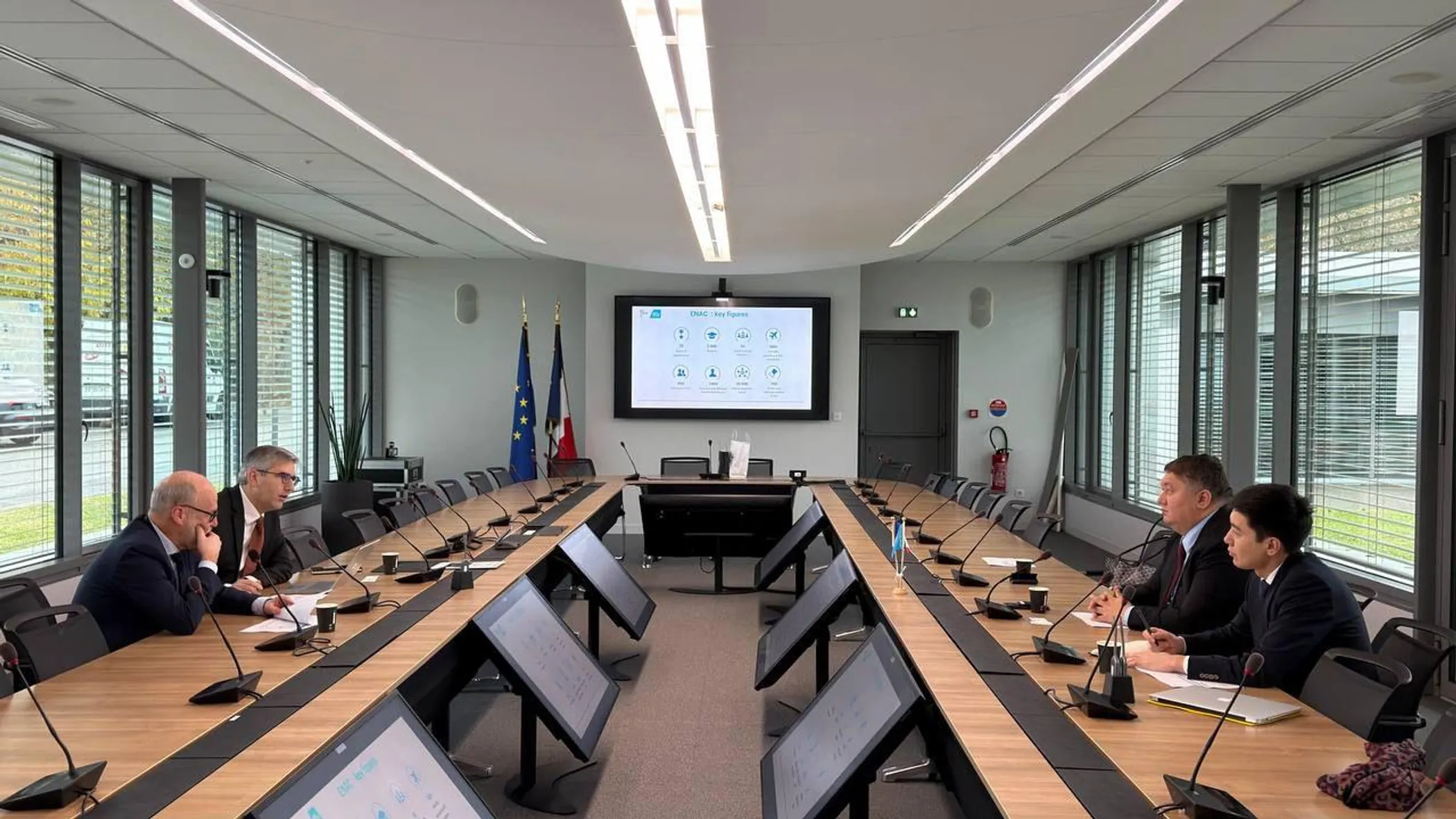Қазақстанның Көлік вице-министрі Талғат Ластаев Францияның Азаматтық авиация ұлттық мектебінің (ENAC) директоры Оливье Шансу және оның орынбасары Николя Калазиспен кездесті.
