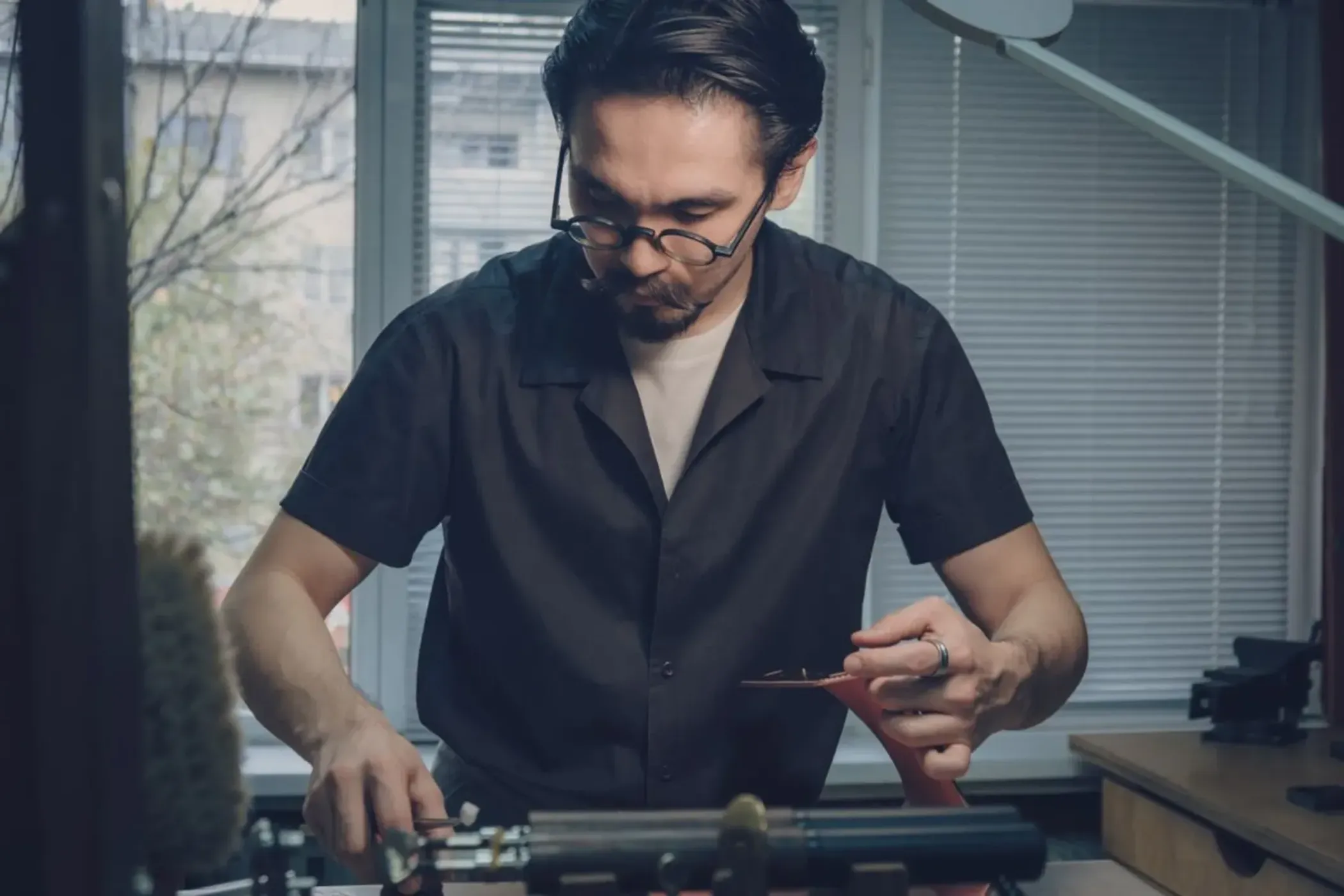 Терінің иісі, құралдардың ырғақты дауысы және ондаған бөлшекті бір бұйымға біріктіру үшін асықпай салынған тігістер. Сұңқар Есмұхан шеберханасында уақыт басқаша зырғиды, бір сөмкені жасауға бірнеше ай кетуі мүмкін.